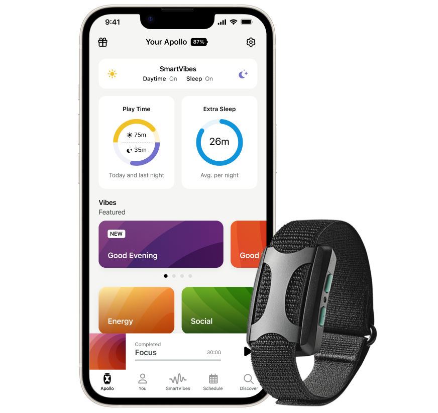 - Enhances Daily Routine: Use the Apollo Neuro app to choose Vibes that help you relax, fall asleep, clear your mind, focus, and stay energized throughout the day.