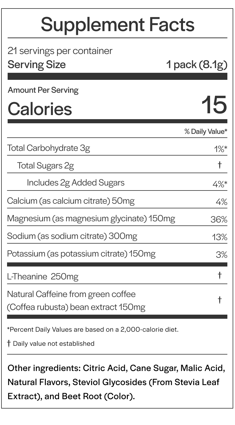 Achieve peak performance with our hydration formula, meticulously designed to deliver the perfect electrolyte balance your body craves, now with an energizing caffeine twist.