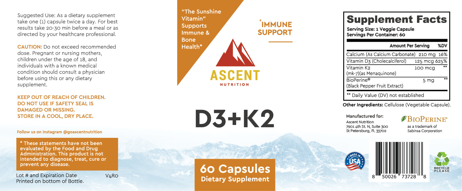 Elevate Your Health with Ascent Nutrition's D3 + K2 Capsules