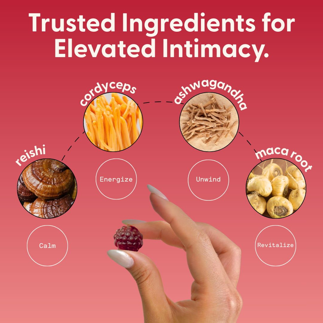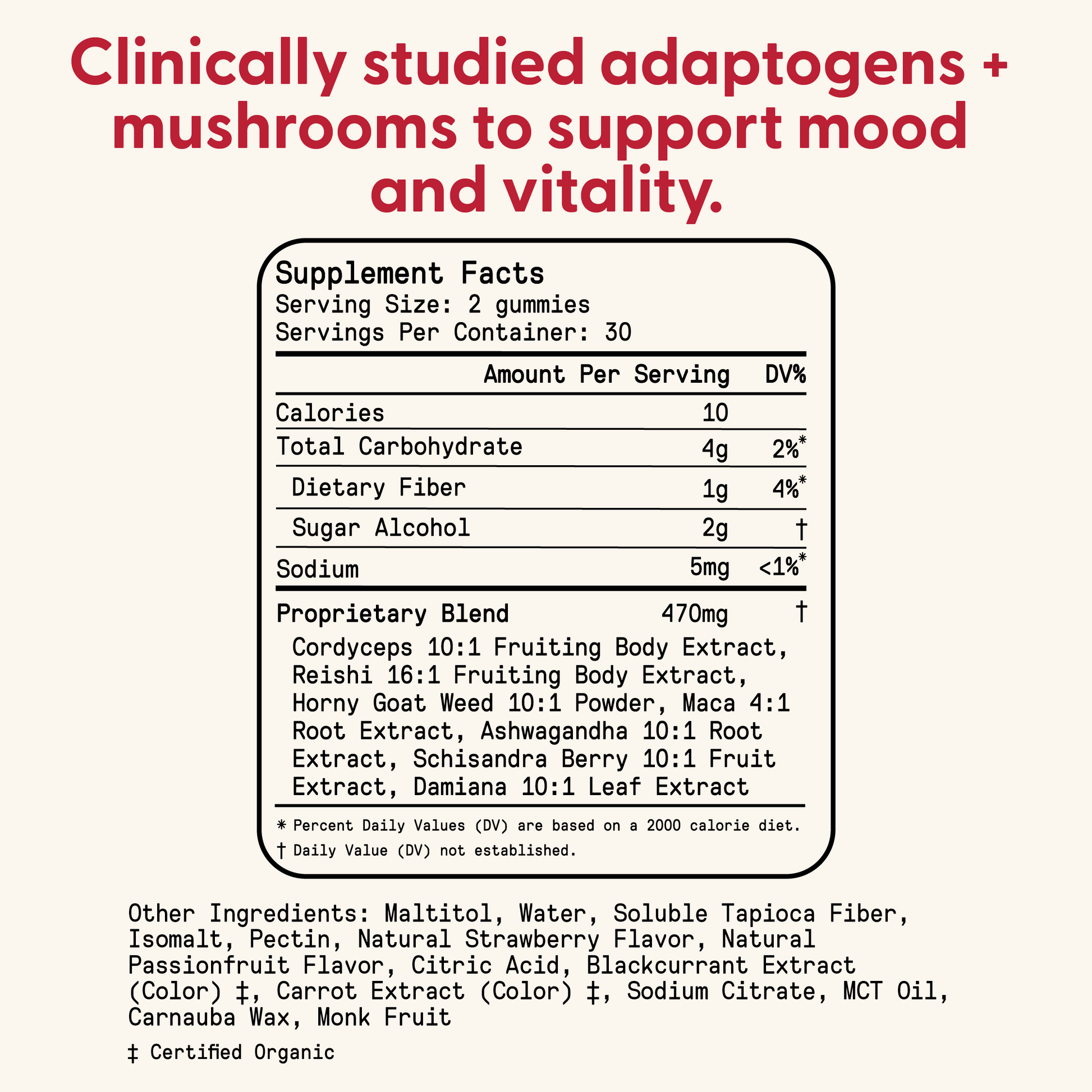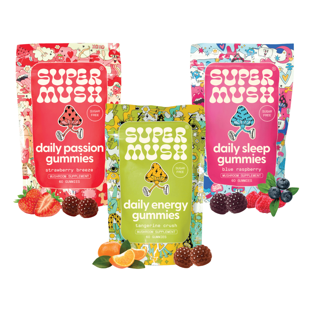 Our three viral third-party lab tested sugar free superfood gummies for energy, passion and sleep. Powered by functional mushrooms and adaptogens. Science-backed. Non-GMO and vegan. Made in USA.