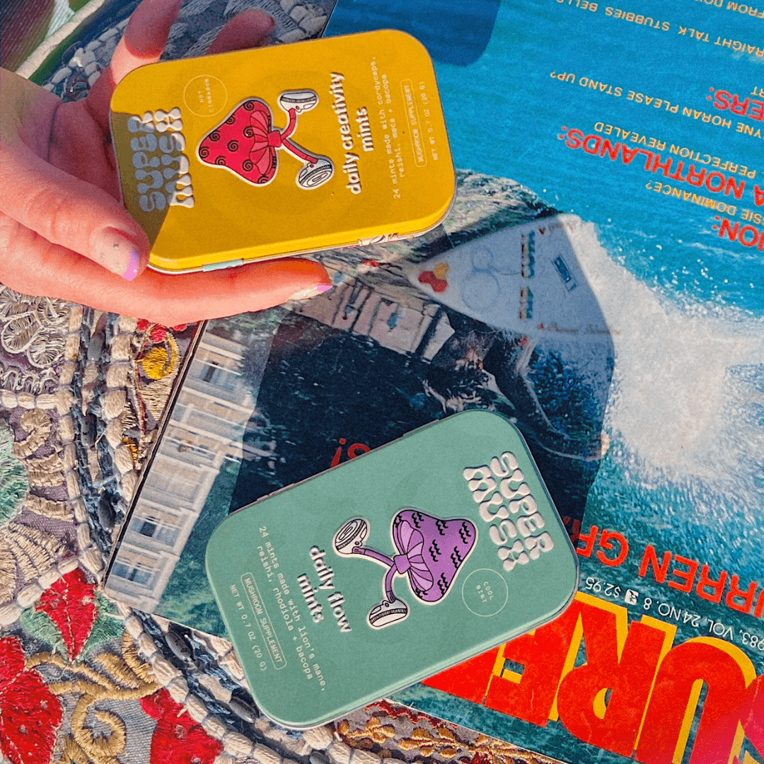Our two viral third party lab tested superfood mints for flow and creativity. Powered by functional mushrooms and adaptogens. Science-backed. Non-GMO and vegan. Made in USA.