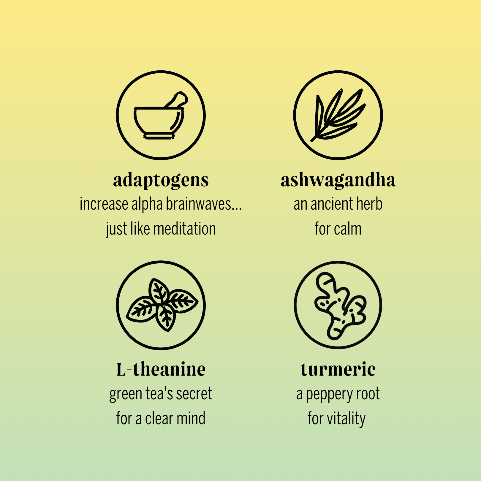 - Ingredients: L-theanine, Ashwagandha, Lemon, Turmeric.