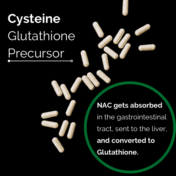 N-Acetyl-Cysteine (NAC) is an amino acid that is a precursor to Glutathione, the body’s most powerful antioxidant, which helps promote optimal detoxification, with anti-aging properties.