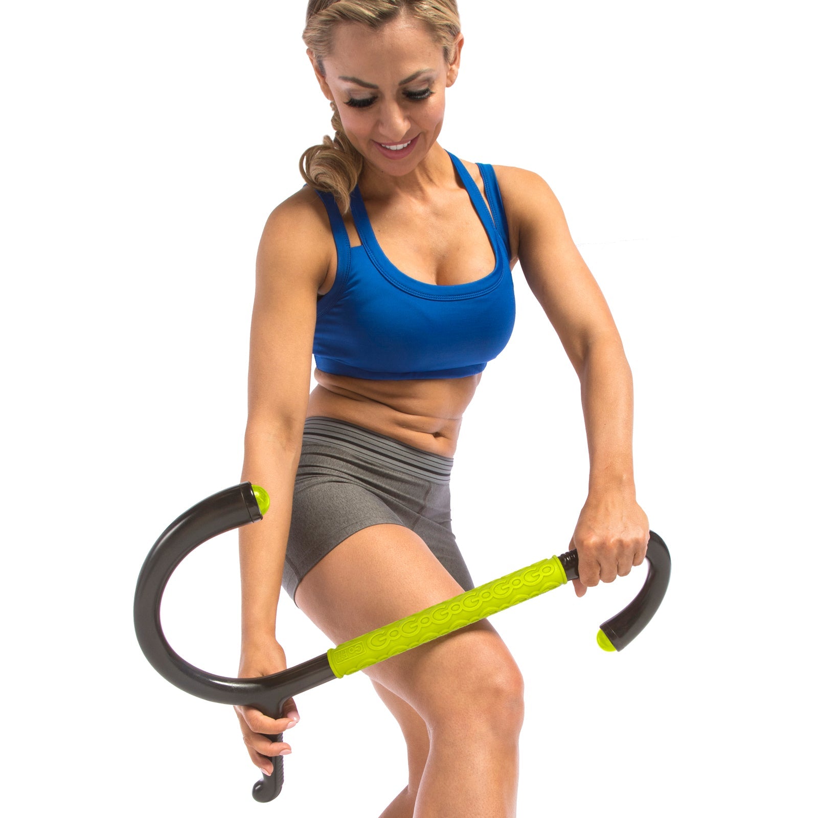 Its unique hook design and hand grips help reach tight muscles with massaging leverage. The relief-pattern of its rolling massage bar kneads sore muscle tissue while the roller-ball end knobs simulate massaging thumbs for total body recovery.