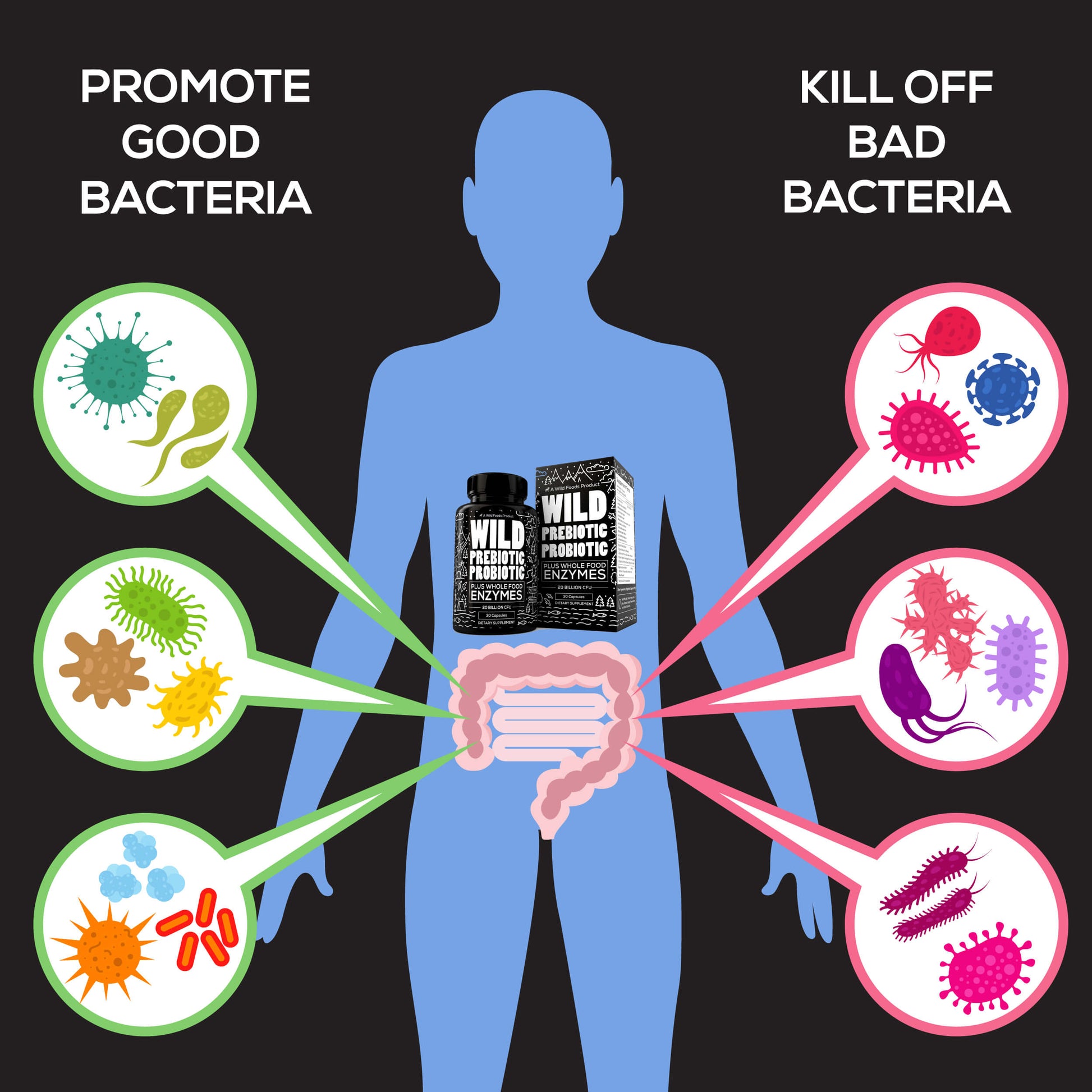 Imagine your gut as the foundation of your healthspan, controlling digestion, immunity, and even contributing to healthy skin and hair. Wild Foods' Prebiotics, Probiotics, and Digestive Enzymes blend works to repopulate your gut with 20 billion active cultures from ten research-backed strains. This powerful combination not only supports smooth digestion, reduced bloating, and cramping but also strengthens your immune system—vital since 70% of your immune health originates in the gut. With added digestive enzymes, it further enhances nutrient absorption and overall vitality for hair, skin, and total body health. No refrigeration is needed, thanks to the freeze-dried cultures that offer stability and ease.