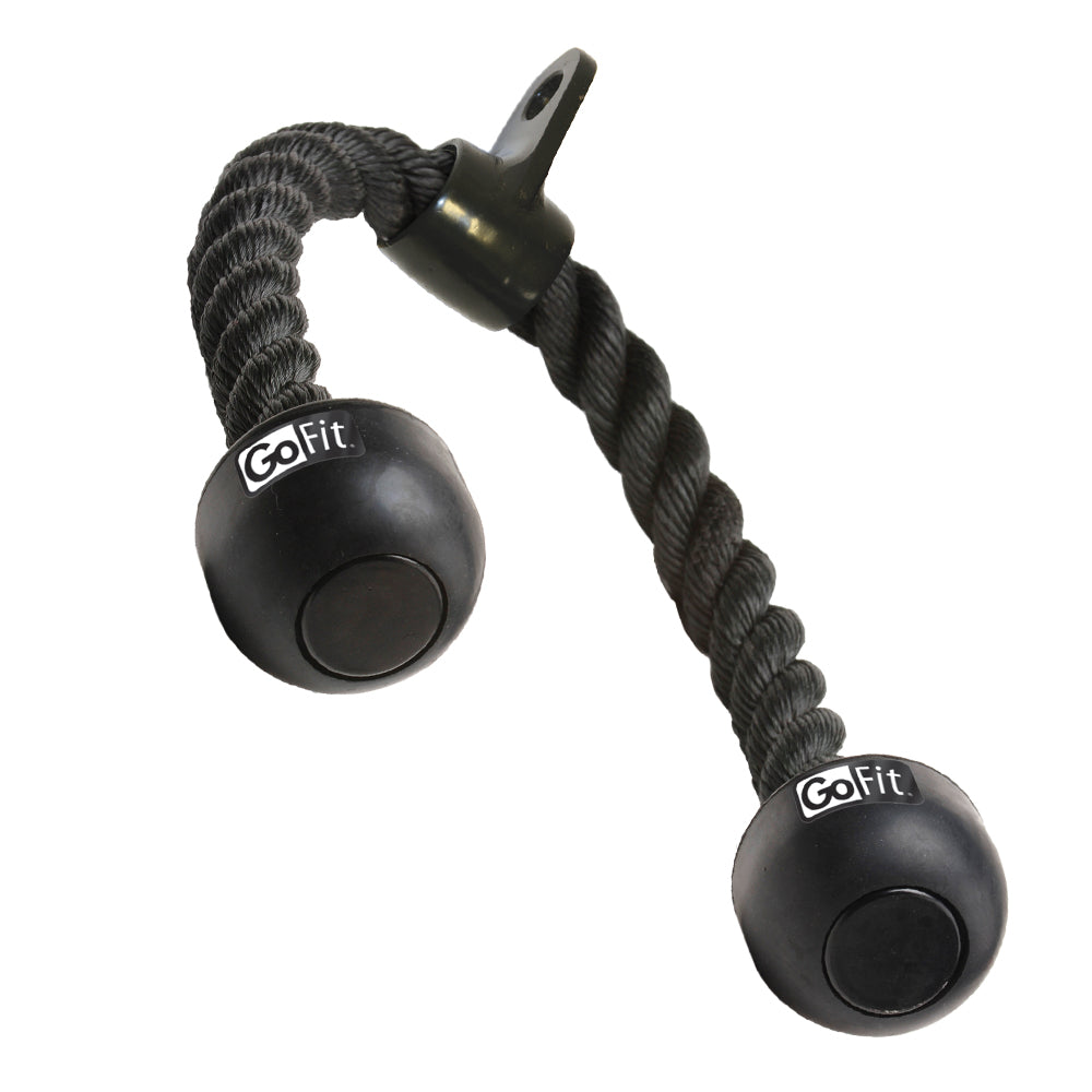 The GoFit Tricep Rope is made of industrial strength nylon with durable rubber end caps. Solid steel hardware with the ability to fit any gym machine, makes it the perfect choice for tricep training.