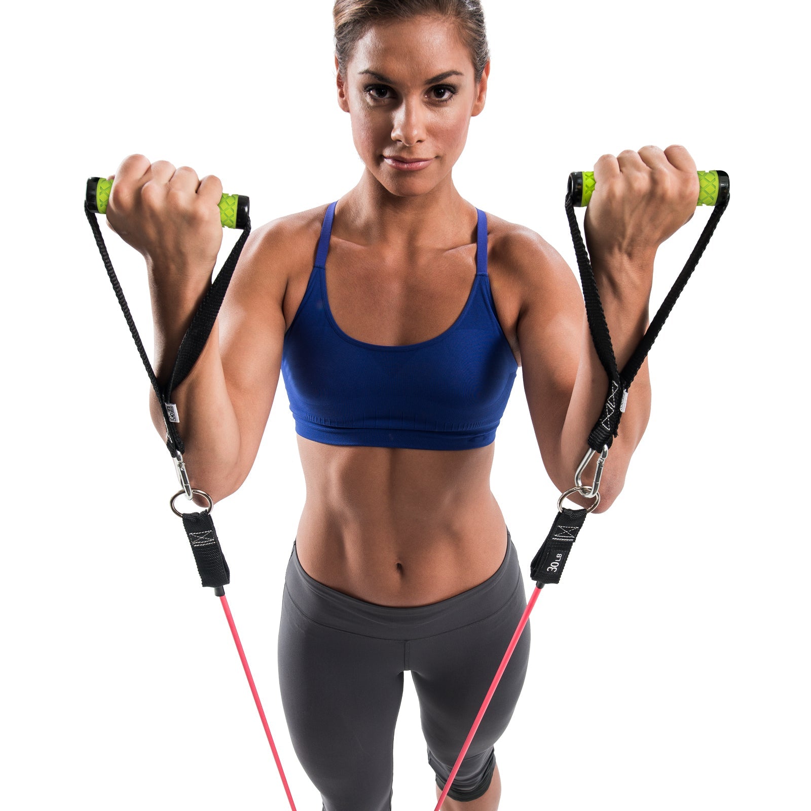 - 3 Resistance Tubes 20 LB (Green), 30 LB (Red), 40 LB (Blue)